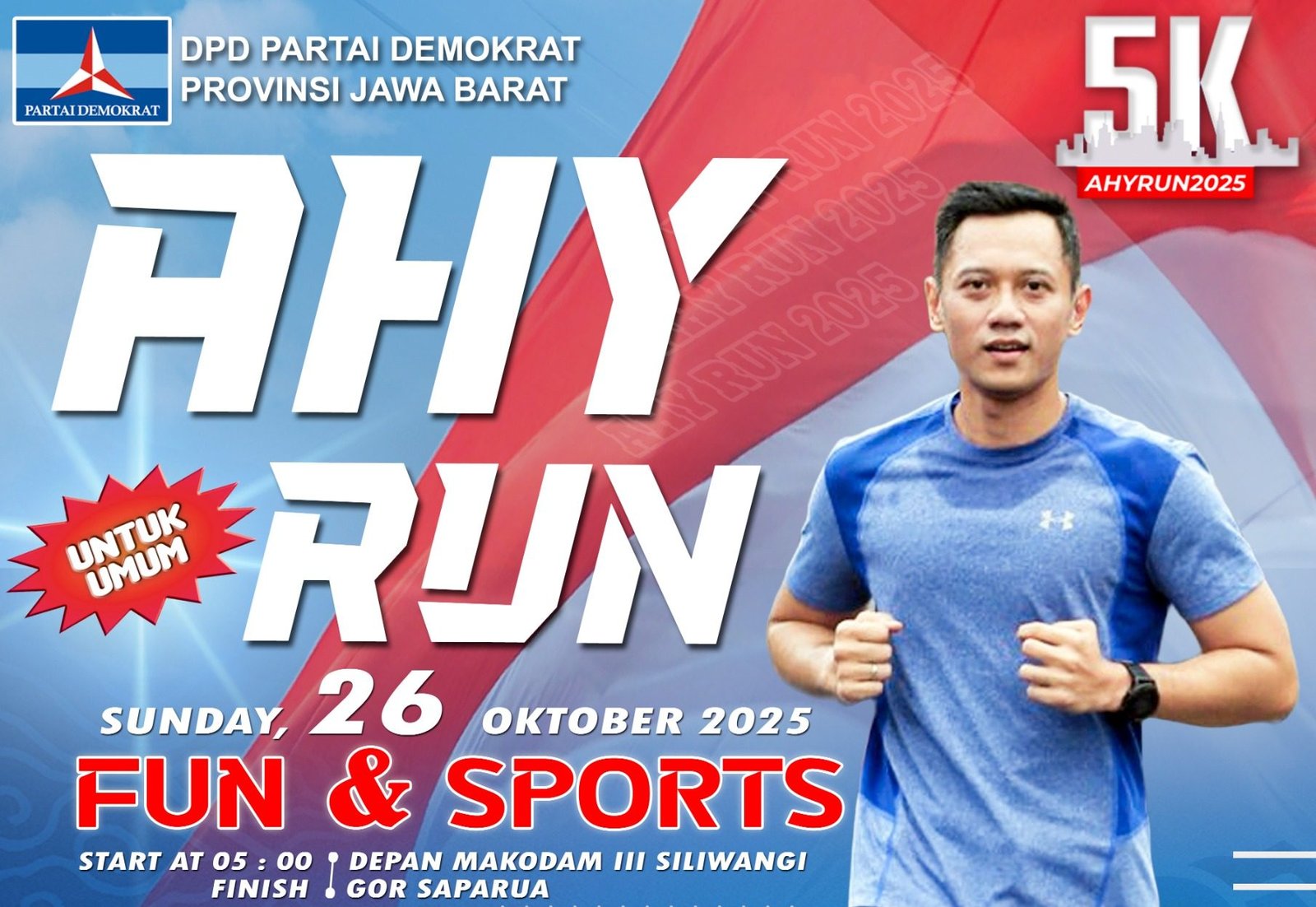 Bandung, cnwbanten.id – Kegiatan AHY RUN 2025 di Bandung, Jawa Barat siap dilaksanakan, Minggu, 26 Oktober 2025, di depan Makodam Siliwangi dan finish di GOR Saparua, Kota Bandung.
