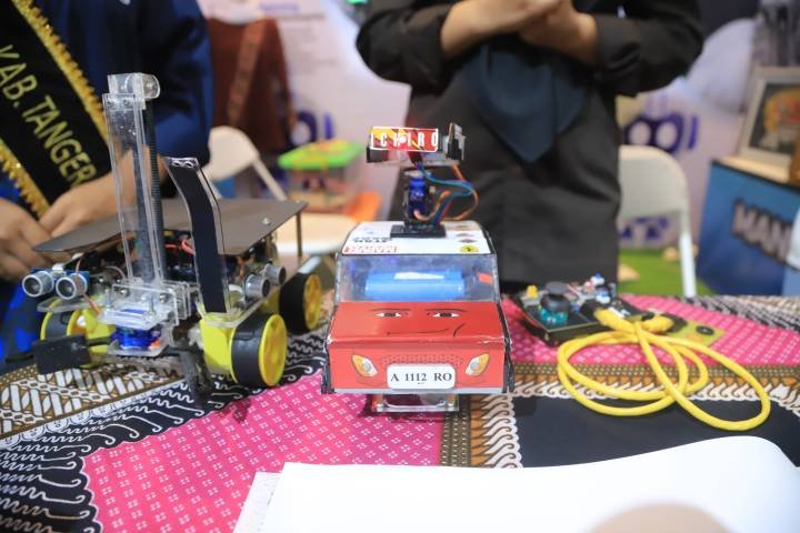 Salah satu inovasi robotika paling menyita perhatian pengunjung dibawakan Madrasah Ibtidaiyah Negeri (MIN) 1 Kota Malang yang menyajikan inovasi ”Robot Waste Finder” karya dua anak madrasah berprestasi, yakni Muhammad Abiyyu Putra Fanani dan Luthfia Zahra Talita.